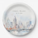 Detroit Michigan Watercolor Landscape Wedding Paper Plates