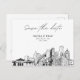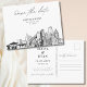 Modern Detroit black and white save the date postcard invitation on matte paper. The front showcases a stunning sketch, setting the perfect tone for your wedding day. Add customize the text to make it your own. Enter the Zazzle design tool for additional design customizations. Automatically comes on matte paper. Adjust to semi-gloss if you prefer.