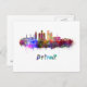 Detroit skyline in watercolor postcard