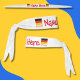 Personalized tie headband features the word DEUTSCHLAND, in the German flag's horizontal striped tricolor of black, red and gold, sits below the flag of Germany. There is a flag at each end of the headband. In the center is a place for a name. Use it to personalize your look. Or, create a gift for someone else by adding his or her name, instead. Great for your next German or Deutsche family reunion.
