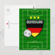 Deutschland Germany Soccer Postcard. Amaze your friends and family with this cool soccer field and ball with German emblem and flag with customizable text "Deutschland" postcard. This great Germany green soccer field postcard is fully customizable, add your texts and image(s)! A great soccer card for the upcoming soccer championship football fan or soccer player!