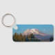 This keychain has a landscape picture as the background. The landscape is a view of Mount Rainier with a full moon in the evening sky. In white text, on the front side: DevelopingNatureGallery.com. On the back, in white lettering: Mount Rainier with Super Moon, 2014. Copyright ©2023 Kimberly J Tilley.