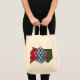 The printing came out very well, better than I had anticipated. The natural color fabric is sturdy with strong seams and comfortable handles. This tote fits easily over my shoulder. As it is filled, the bottom flattens out--very cool! I would buy this product again. This grocery tote holds a lot of groceries! The image quality was very good. The colors were a little darker than I had expected. The darkness may have been due to printing on a natural color fabric rather than on white. The cat design is attractively centered on the tote. The spirit of the design is very lively, just as it appears on the Zazzle website.