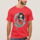 My 11 yo wore adult XL (5’7” 165#). The 8yo is small framed. She wore adult small and tied it in the back. Grandma wore adult large with long sleeve shirt underneath. Tall girl adult medium. Dark haired male adult large. Good quality dark Heather gray, Gildan brand shirt. -it was next up from basic choice and cost about $20 per shirt. Not too thick or thin. Washed and dried well, no major shrinkage. Not see-through. Can wear a bra under it fine. Screen print is just as shown and well done, front and back.