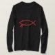 Devil Fish. A parody of the common Jesus Fish emblem (or ichthys). A Jesus Fish with horns and pitchfork.