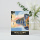 Devils lake postcard. Sailing boats on Devil's lake, Wisconsin. Watercolor travel postcard in vintage style.