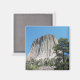 Located in the Black Hills of northeastern Wyoming, Devils Tower National Monument, stands tall against the blue sky. This color photo captures the shadows, formed by the vertical columns of igneous rock, highlighting the grooves on the face of the tower. Loose rocks form a pile near the base of the tower. Pine trees encircle the base as it rises high above the surrounding landscape. A Ponderosa pine tree stands tall in the foreground adding a green contrast against both the tower and a blue sky.