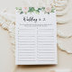 DEVON Greenery Wedding A-Z Bridal Shower Game Card