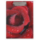 Dew covered red rose decorating grave site in clipboard