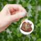 Round keychain with Dezi the Ragdoll cat giving a raspberry pose.