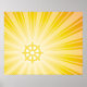 The Dharma Wheel is one of the universal symbols of the Buddhism, representing the collective teachings of Buddha, known as the dharma. Each spoke in the wheel represents one step on the Noble Eightfold Path. This poster is designed as a simple meditative Buddhism poster with the Dharma Wheel surrounded by bright rays of energy. Relax and be mindful!