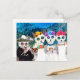 Let the Day of the Dead festivities begin! Our kittens are gathered together with their faces painted and little brother playing the horn, ready to celebrate with family and friends on this fun postcard!