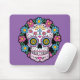 Dia de los Muertos (Day of the Dead) sugar skull is surrounded by colorful flowers.