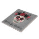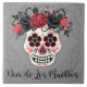 Day of the Dead sugar skull and roses in a gray decorative tile.