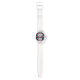 I only have one complaint. I ordered the watch with clear case and strap, and what was sent was white case and strap. I'm going to keep it because 1) it looks very nice in white, and 2) it would take too long to get a replacement made and sent in time for my occasion. Aside from the mix up with the color, the watch does look very good in white. The purple dial is actually sparkly which did not show in the online images. That was a nice surprise. If you like Swatch watches this is very similar to those. It's 33.6mm in diameter, 10.5mm thick, and 40.6mm lug to lug. Stainless steel case back says 3ATM/30m WR, so no swimming or showering or submerging this one. If you like Woodstock, this is a great choice.