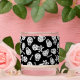 These white, Dia de los Muertos skulls were designed to look like cut paper skulls used in Mexico for Day of the Dead celebrations. It's a beautiful holiday with many unique decorations, flowers and a celebration of loved ones that have passed. This spooky skull patterned scented candle is customizable so you can change the pattern size and select a different background color instead of the black shown here. Great for displaying on a Day of the Dead altar. Personalize this candle with your loved one's name if desired.