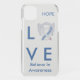 The words on the awareness ribbon iPhone case note "Hope, Love, Believe in Awareness". The words can be customized with your personal awareness messages!