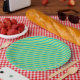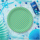 It is diagonal blue and green stripes presence would give elegant appearance in paper plates.