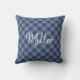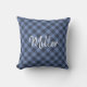 Diagonal Blue Plaid Pattern White Script Name Throw Pillow