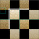 A diagonal checkerboard design in alternating solid black and gold damask. Rotate the image 45 deg. for a traditional horizontal/vertical check.