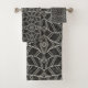 Bath Towel Set Of Three bathroom amenity and home furnishing decor accessory with Diagonal Wavy Grayish Spotted Dots Patterned On Black Background graphic art design image by http://thefabricseal.zazzle.com