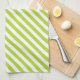 Diagonal lime green and white stripes pattern kitchen towel