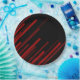 An asymmetrical design with red diagonal lines on a black background creates a stylish, retro vibe.
