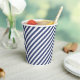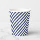 Diagonal navy blue and white stripes pattern paper cups