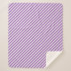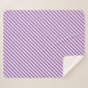 Diagonal purple and white stripes create a bold, patterned background. The alternating colors convey a lively and energetic tone.