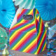 This artwork features rainbow stripes in a fun colorful pattern.