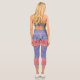 The women's capri leggings have a geometric diagonal shape striped pattern of red and blue.