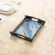 This is a well made, sturdy wooden tray with a flawless black finish and lovely map on the tray surface. It is both vintage & modern at the same time. Looks exactly like the photo; does not disappoint. So nice to find something of quality individually made and not the mass-produced 'shabby chic' merchandise seen in stores. I am so pleased to be able to give this to my college-age niece for her birthday. This can be used as a tray to hold jewelry or toiletries, or hung on the wall as art. The map surface is sealed (it is slightly shiny) so would be moisture resistant. It is well worth the asking price but I was able to apply a sale code as well. Very happy with my purchase. Map is crisp & clear and sealed with a water-resitant finish.