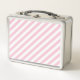 Diagonal white and pink stripes pattern metal lunch box