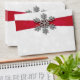 The design features a light silvery grey and white snowflake textured background with a diamante snowflake on top of a silky looking ribbon. The wording incorporates the same silvery grey and red colors of the design and can be easily personalized to suite your special event.