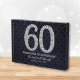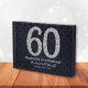Diamond 60th wedding anniversary acrylic block personalized with the couple's names, the marriage date, and space to add a message on the back. Design with a black background. Ideal gift for parent's marriage celebration of 60 years together.