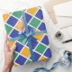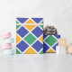 Diamond pattern design in orange, green, blue and white.