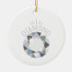 Lightweight, smooth, pure white ornament with nice sheen. Perfect size to be seen from across the room ... and to attract closer inspection! Price was great for ordering enough for the whole family! Clear, bold black design just as requested. Matches the order exactly. Just so nice!