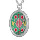 I chose gold plated so that the metal would not react with my skin oils and perspiration. But, I changed the necklace from the gold plated one to a sterling silver. My skin cells will tarnish the silver. But it will not look as bad if some portion of the gold plated necklace somehow became compromised. Zazzle did a find job turning the picture into a pendant for me. As you can see, the colors and the printing of the final product, match the preview. The picture I took is not very clear. But I am pleased with the product I received.