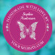 Personalize this diamond butterfly "Handmade With Love" sticker with your name and website on deep fuchsia background and circle design with white text. Click “Edit using design tool” to change colors and type styles.