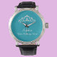 Personalize name and your message in white script on teal background with sparkling white diamond crown.