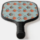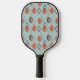 This pickleball paddle has a mid-century modern design of solid diamonds overlapping and repeating across the design, as well as diamond outlines repeating across the design in shades of orange, grey-green, dark blue. If you like the design but prefer different colors, message me.