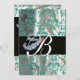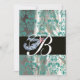 DIAMOND FEATHER BLUE WHITE SILK DAMASK MONOGRAM INVITATION