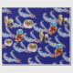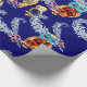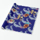 DIAMOND FEATHERS AND JEWEL OWLS IN BLUE WRAPPING PAPER