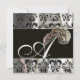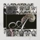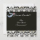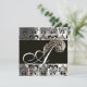 DIAMOND FEATHERS SILVER BLACK SILK DAMASK MONOGRAM INVITATION