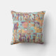 Add a touch of mid-century modern charm to your living space with this pillow. It features a diamond and harlequin pattern coupled with intricate floral motifs in soft, muted pastel blues, purples, oranges, and browns. It effortlessly combines modern style with a nostalgic vibe.