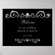 A bar of glittery diamonds decorate this sign that says Welcome to our wedding.