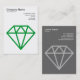 A business card template with an attractive jewel or diamond motif on the front. Company name, business type and address on the front with name, job title, telephony, web and email addresses on the back, with a similar layout on a gray background with a diamond motif in a lighter gray. This card can also be further customized.