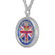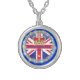 Fully customizable pendant necklace with a round design of a Crown with diamonds and sparkle effect and text " Elizabeth II Diamond Jubilee 1952-2012 framed with an image of a ring of Diamonds and sparkle effect around it ..on a background of a Union Jack and deep royal blue . Version shown here is as purchased by me for myself..