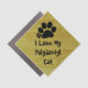 Pawprint with seven toes (polydactyl). Single paw above text that reads: "I Love my Polydactyl Cat". Background of bamboo floor boards.