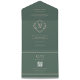This evergreen wedding invitation features a modern diamond-shaped monogram at its center, with the bride and groom's initials prominently displayed. The monogram is surrounded by classic typography in ovory, adding a touch of elegance to the design. Delicate floral details further embellish the invitation, giving it a romantic and timeless feel. The overall design is sophisticated and unique, making it a perfect choice for a stylish and sophisticated wedding.